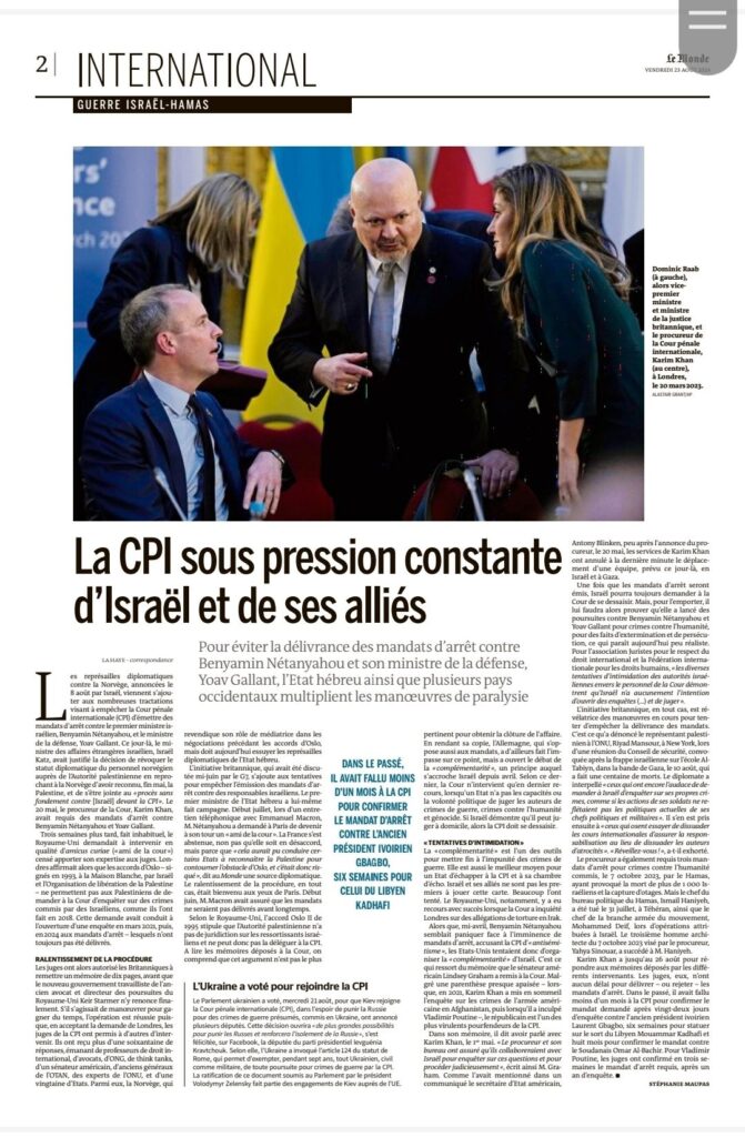 Un dernier article du quotidien Le Monde affirme que les pays occidentaux sont en train de mettre une pression folle sur la Cour internationale de justice afin de ne pas poursuivre les dirigeants israéliens ! Encore une fois, c’est la démonstration que l’Occident est sous la botte sioniste car aucun pays digne de ce nom, aucun pays souverain ne prendrait le risque de s’impliquer dans un génocide pareil. Les pays occidentaux n’ont absolument aucun intérêt à se mettre à dos leurs populations ainsi que le monde musulman en se couvrant de déshonneur pour des siècles et des siècles ! Le fait de soutenir l’entité sioniste démontre que les dirigeants occidentaux sont corrompus et qu’il existe un agenda politique occulte…